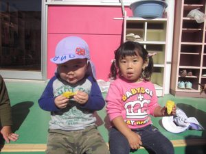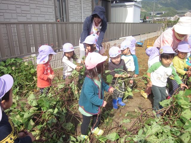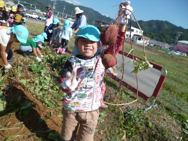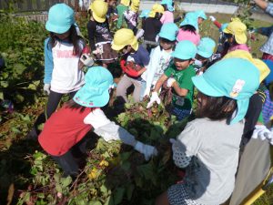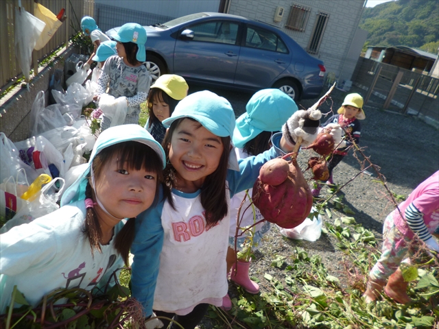 2015年11月1日 / 最終更新日時 : 2015年11月1日 kanri1 2015年11月 やきいも会 「芋ほり」「焼いも大会」 畑で育ったサツマイモを収穫しました。 「うんとこしょ! どっこいしょ!」 友だちと一緒に大きなサツマイモをとれたよ。 収穫したサツマイモは焼いて食べました。 ほくほくでおいしかったね。 干し芋もおいしくできたよ。