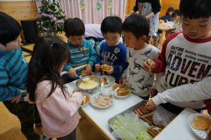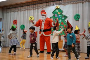 2016年12月21日 / 最終更新日時 : 2016年12月21日 kanri1 2016年12月 クリスマス会 ニューヨークからボビーサンタが来てくれました。 サンタと一緒に踊ったり、プレゼントをもらったりして楽しい時間を過ごしました。 最後は、年長さんによるミュージックベル。 きれいな音色に、うっとりのみんなでした。 クリスマス給食は、バイキングサンドウィッチ。たくさん食べて、大満足でした!