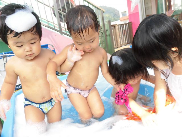 2019年8月27日 / 最終更新日時 : 2019年8月27日 kanri1 2019年8月 プール遊び 今年の夏もとても暑かったですね。 子どもたちは毎日プールに入っておおはしゃぎ! 時には、泡プールをしたり、シャボン玉をしたり、ボディーペイントや小麦粉粘土をしたりして 思い切り楽しんだ夏でした。
