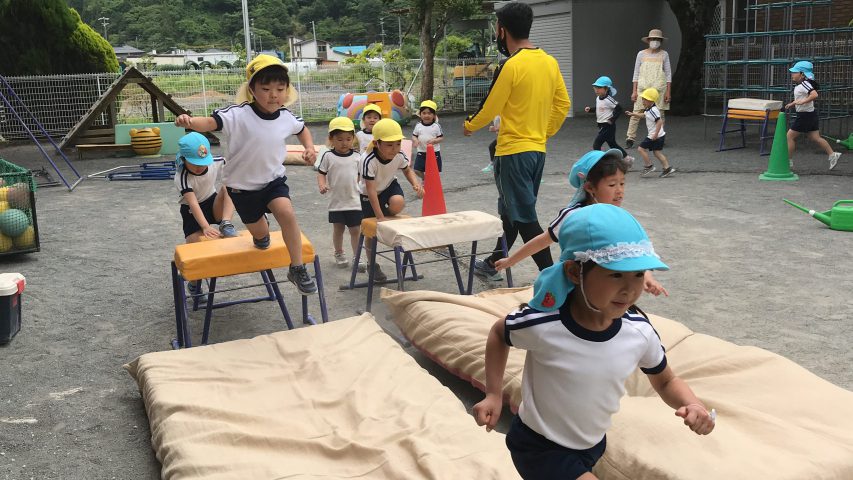 2021年6月9日 / 最終更新日時 : 2021年8月9日 kanri2 2021年6月 きのいい羊の先生と体操教室 幼児さんは毎週水曜日を体操の日として体を動かして楽しく遊びます。 今日はきのいい羊のガッチャマン先生と一緒にぐるりんこや両足ジャンプなど様々な動きにチャレンジしました。 みんな楽しく体を動かし、いい表情を見せてくれました。