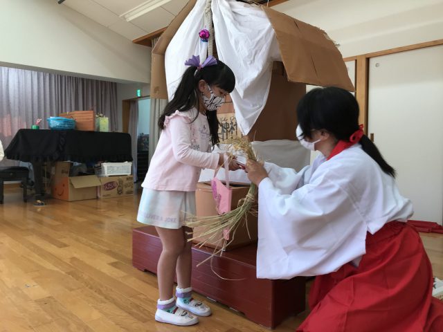 2021年11月15日 / 最終更新日時 : 2022年4月4日 kanri2 2021年11月 七五三の集い 七五三の由来を知り、各クラスが麻華神社を訪れ参拝をしました。 自分たちの手作りの千歳飴の袋に飴を入れてもらい嬉しそうな子どもたちでした。