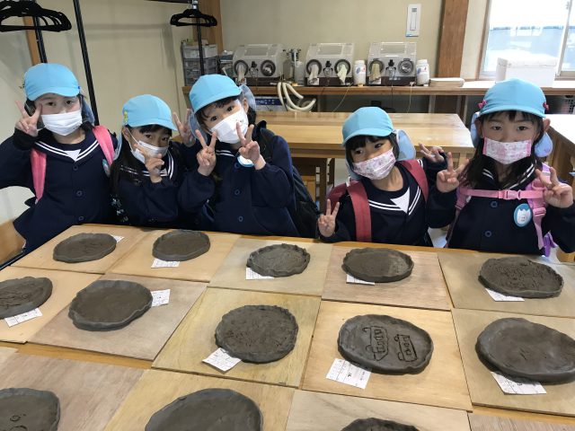 2022年3月10日 / 最終更新日時 : 2022年4月4日 kanri2 2022年3月 卒園遠足 年長児はバスに乗って駿府匠宿を訪れました。 思い出に『お皿作り』を体験して、粘土をお皿の形に広げたり、絵付けをして楽しみました。手作りお弁当にみんな大喜びでした。