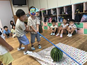 自分達でお店屋さんになろうとジュースやおめん屋を作り、夏祭りごっこを楽しみました。
