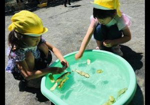 こども園の畑で育てたじゃがいもを幼児クラスが掘りました。 「うんとこしょ〜!」と葉を引っ張るとゴロゴロと出てきたじゃがいもに大喜び! 大きなじゃがいも、コロッと小さなじゃがいも、面白い形をしたじゃがいもなど 色んな形や大きさのじゃがいもが掘れました