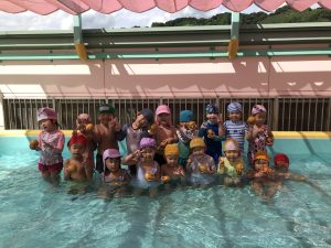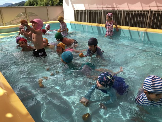 9月8日(金)プール納め(梨拾い) 水の事故なく無事にプール遊びを終えることができたことに感謝の気持ちを込め、 この地区の昔からの風習でもある梨拾いをしました。 たくさんプールや水遊びをして泳いだり潜ったりお水が大好きになった子どもたちです。
