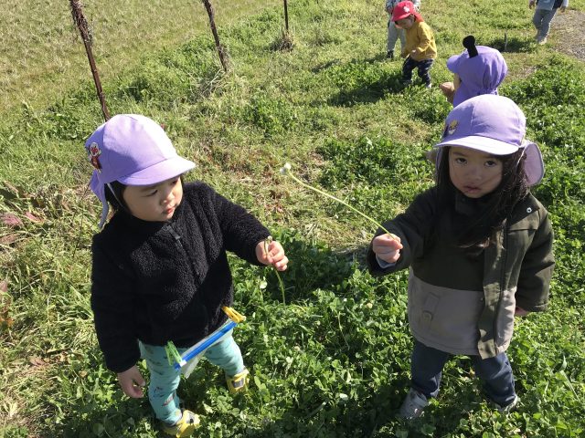 2024年3月29日 / 最終更新日時 : 2024年3月29日 kanri2 2024年3月 乳児クラス~お散歩たのしいな~ お散歩に行くと、つくしやクローバーが咲きはじめ、嬉しそうに摘んでは持ち帰っています