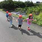 涼しい日には、お外へ出てお散歩! 園の周りには自然がいっぱいです。 虫やお花を探しにお散歩へお出かけしました。